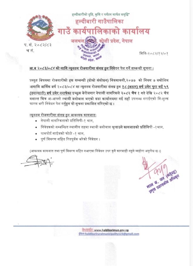 न्युनतम रोजगारिमा आवेदन पेश सम्बन्धमा ।